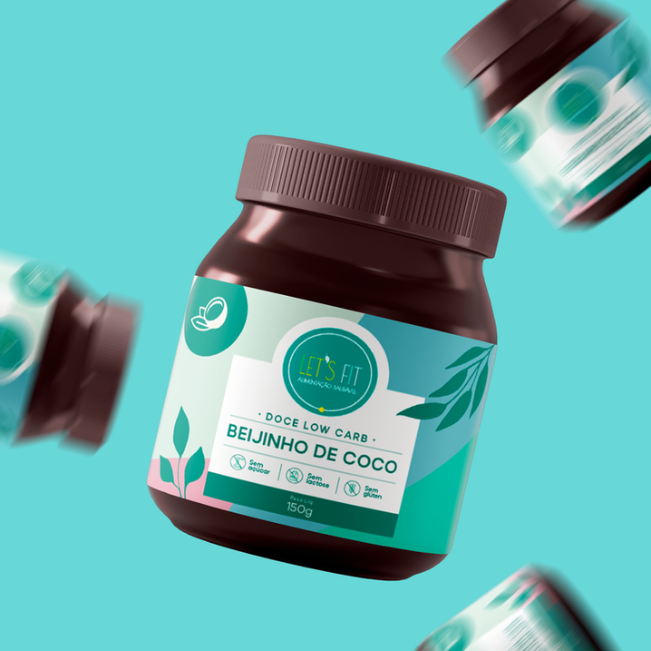 Assim, construímos uma identidade para as embalagens alinhada com seu core business, a venda de produtos baseados em uma alimentação saudável. Cores, leveza, simplicidade e muita personalidade: a linha de doces low carb da Let's Fit ficou demais!